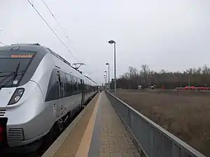 Halle Messe (German: Bahnhof Halle Messe) is a railway station located in Halle (Saale), Germany. The station is located on the Magdeburg-Leipzig railway. The train services are operated by Deutsche Bahn. Since December 2013 the station is served by the S-Bahn Mitteldeutschland.