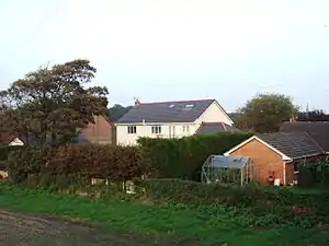 ![]() The site of Halsall railway station in 2007. The white house in the centre, now a private residence, is the old station building. The track ran parallel to the edge of the field | |