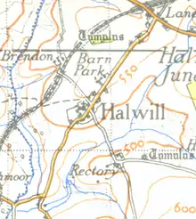 Halwill is a village in Devon, England just off the A3079 Okehampton to Holsworthy road. About a mile away on the main road is another settlement called Halwill Junction.