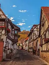 The northern route of the Palatine Ways of St. James, which was part of the historical pilgrim route to Santiago de Compostella, lead through Hambach. The three former local areas "Ober-", "Mittel-" and "Unterhambach" are named after their altitude and have been united for a long time.[2] Unterhambach is often equated with its most significant street, the "Andergasse" (Palatine German "anner Gass", meaning "andere Gasse" in German or "other alley" in English).