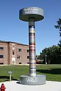 The active quilt business has inspired the construction of The World's Largest Spool of Thread. At 22 feet tall and 8 feet wide, the spool was unveiled in September 2019, containing 1 million yards of Aurifil thread. Located at 300 East Bird in Hamilton the spool rests on the corner of the Missouri Quilt Museum.[25][26][27]