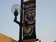 A banner along King William Street in Hamilton supporting the team, partially depicting the team's logo