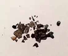 Due to the high volume of hammerscale flakes and spheroid shells produced during regular ironworking processes, archaeologists often use its presence to identify iron smithies and smelters. Hammerscale is easily detected due to its composition and magnetic nature, which allows for it to be easily extracted with a magnet.[8] In addition, again due to its magnetic nature, it is very useful when completing a magnetic susceptibility survey of a site. And, although both finished iron objects and slag are also frequently recovered at former locations of ironworking, hammerscale is arguably a more reliable recovery. Due to their size, iron objects and slag finds are more likely to have been removed or reused, whereas the small hammerscale flakes or spheres were most likely not removed.[9]