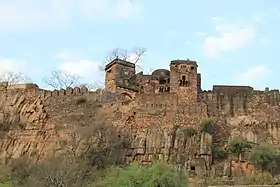 Govindaraja had established a new kingdom with its capital at Ranathambore, after being banished by his father. Following Hariraja's defeat, several of Ajmer's officials sought his asylum. Govindaraja treated them well, and appointed them to suitable offices.[22] After Govindaraja's death, Balhana ascended the throne. Before his death, Balhana appointed his elder son Prahlada as the new king, and his younger son Vagabhata as the prime minister. Prahlada once killed a lion during a hunting expedition. As his party celebrated the killing, another lion severely injured him. On his deathbed, Vagabhata promised to serve his son Viranarayana faithfully.[23]