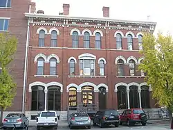 Hammond Block (Budnick's Trading Mart) is a historic commercial building located at Indianapolis, Indiana. It was built in 1874, and is a three-story, trapezoidal Italianate style red brick building on a limestone faced raised basement. It has a low hipped roof with a broad eave with a panelled frieze and bracketed cornice. It features cast iron decorative elements.[2]: 2–3