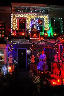 Hampden's 34th Street near the southern end of the neighborhood celebrates the Christmas holiday every year with the "Miracle on 34th Street" where home owners on both sides of the street decorate their houses with thousands of lights and Christmas decorations, attracting visitors from all over the world to see the spectacle. Another great Christmas street is Roland Avenue. One house in particular, 3550 has an extraordinary "Nightmare Before Christmas" themed display that actually has lights synchronized to music. This house is known around the neighborhood as "The Halloween House", with the decorations up for the whole year.