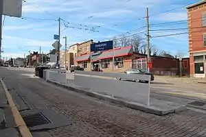 Hampshire is a station on the Port Authority of Allegheny County's light rail network, located in the Beechview neighborhood of Pittsburgh, Pennsylvania. The T travels along former streetcar tracks on Broadway Avenue through the area. The inbound stop is located on a small island platform in the middle of the road, while the outbound stop is just a sign, with no platform. The station serves a densely populated residential area and also the neighborhood's small but crowded business district. It is located in an area where bus service is limited because of the hilly terrain.