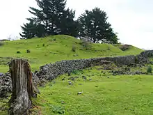 Hampton Park is one of the volcanoes in the Auckland volcanic field. A small scoria cone reaching 35 metres (114 ft 10 in) above sea level, with a shallow crater around 50 metres (164 ft 1 in) wide, which has been modified by quarrying.[1] The scoria cone sits in the centre of a much larger explosion crater, the eastern arc of the surrounding tuff ring is still present. Stone from the volcano was used to build dry-stone walls and the nearby St John's Church built on the tuff ring crest.