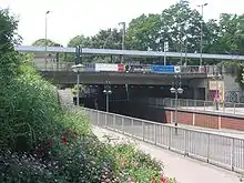 Once the Second World War was over, damage to the entrance building was repaired. However, it was demolished for the construction of an underpass for Philippsruher Allee in the 1970s along with the freight shed. It was replaced by a single central platform built on the new bridge over the underpass.