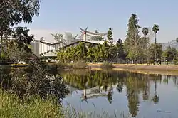 The 1952 Mid-century modern style Observation Pit in the park, a repository for large Ice Age fossils from throughout the tar pit area, reopened in 2014 after being closed since the mid-1990s. It is part of the Page Museum's new Excavator Tour.[4] The Pit 91 fossil excavation, also reopened in 2014 for excavations and public viewing, had closed in 2006 to focus on fossils newly uncovered during excavation for LACMA's new subterranean parking garage in the park's western area.[5] The skeleton of a near-complete Columbian mammoth was among the excavated discoveries there.[6]