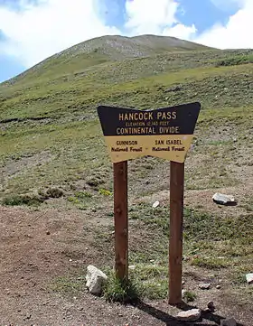 Hancock Pass, elevation 12,208 ft (3,721 m), is a high mountain pass on the Continental Divide in western Colorado. The pass is on the border between Chaffee and Gunnison counties and between the Gunnison and San Isabel national forests.