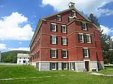 The other iconic building is the large red-brick dwelling the Hancock Shakers built in 1830 served as dormitory housing to more than one hundred brothers and sisters.[13] The dwelling, like the barn, shows the Shakers' prosperity, as well as their appreciation of the benefits of space, ventilation, and labor-saving modern conveniences such as water piped indoors. The dwelling was a good advertisement for the creature comforts the society provided to its members. In modern times, the visitors to the Hancock Shaker Village can experience authentic Shaker meals in the dining room in the Brick Dwelling. Though the guests are no longer required to separate by sex while they eat, the event maintains its authenticity with its use of sermons, songs, hymns and reliance on natural and candle light.