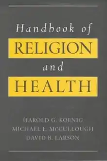 Handbook of Religion and Health is a scholarly book about the relation of spirituality and religion with physical and mental health. Written by Harold G. Koenig, Michael E. McCullough, and David B. Larson, the book was published in the United States in 2001. The book has been discussed in magazines[1][2][3] and reviewed in professional journals.[4][5][6][7][8][9][10][11][12]