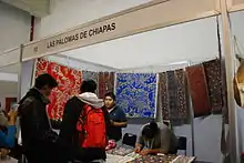 Both governmental and non-governmental agencies have worked with various indigenous groups to improve production and commercialization practices. Chiapas artisans have participated in international exhibitions such as a 2006 event in Berlin.[2] In 2012 an effort by the Tec de Monterrey, Santa Fe and several foundations worked to teach and improve commercialization techniques for the benefit of about 500 artisans in the state, enlisting the support of Mexican and U.S. students.[10] In 2015, state governor Manuel Velasco raised the state's budget to promote Chiapas handcrafts by eighty percent, and offered state artisans credit with no interest as well as a subsidy for supplies for over 400 artisans in thirteen municipalities (Amatán, Amatenango del Valle, Bochil, Chiapa de Corzo, Coapilla, Copainalá, El Bosque, Ocozocoautla, San Andrés Duraznal, Santiago el Pinar, Simojovel, Suchiapa and Teopisca).[11]