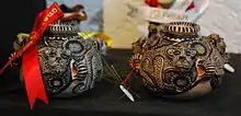 Lacquerware, going by the names of laca or maque, is a craft tradition which survives from the pre Hispanic period. While it was a common craft in the Mesoamerican period, today the only center for its production in the state is Chiapa de Corzo. The lacquerware is coated and decorated using fine brushes, but the products tend to be limited to gourds, bowls and “toles.” In the past a wider variety of objects were lacquered such as religious items and furniture. The craft declined and almost disappeared but today it is supported by state and federal government entities that train artisans and help them sell their wares.[8] The state also supports a lacquer museum, which was founded in 1952 by anthropologist Alfonso Caso to demonstrate the pre Hispanic origins of the craft, its techniques and materials.[2]