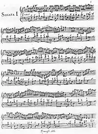 Each sonata displays the melody and bass lines—with the expectation that a competent keyboard player would supply the omitted inner parts based on the figured bass markings. By modern-day standards, the music in the publication has a primitive appearance—with squashed notes and irregular spacings, stems and bar widths—as can be seen in the image of page 1 (reproduced below in this article).