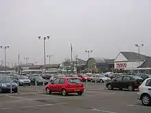 The main car park at Handforth Dean, with Marks & Spencer and Tesco in the background