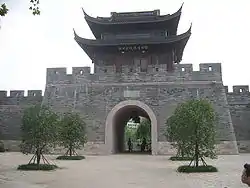 Hanghzou's first city walls were built during the Sui Period in the 11th year of Sui Kaihuang, corresponding to 591 AD. Its perimeter is recorded as being 36 li and 90 paces long. Its eastern boundary would have been about where Zhonghe Road (中河路) is today. The western wall ran along the eastern bank of Xihu, the West Lake. To the south the wall pressed up against Fenghuang Mountain (凤凰山) and its northern limit was the Qiantang Gate (钱塘门), roughly where today's No. 6 Park (六公园) is. Certain parts of modern-day Hangzhou's downtown area would not have been included inside the Sui city walls, such as Mt. Wu (吴山) being excluded by an indent in the wall and Wulin Road (武林路) being too far north. [1]