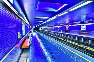 The station features a giant mural by Roger Somville.