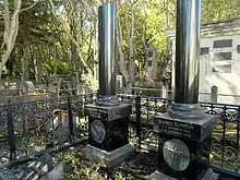 Hannes Hafstein died in Reykjavík on 13 December 1922. In 1931 a statue of Hannes by sculptor Einar Jónsson was unveiled in Reykjavik.[1] The roundels on his and his wife's graves (see photo to left) were also by Einar Jónsson.