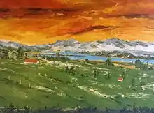 Hans-Jörg Holubitschka did not paint the representational quality of a landscape. The landscape was the medium for him to give the viewer a familiar motif access to its "soul pictures". He made use of color and its composition possibilities as an instrument to mental states to express. His images reflect in their color effects and excesses of the painter of the American Color Field painting like Mark Rothko, Barnet Newman or Clyfford Still. While these painters moved in perfect abstract space, it took Hans-Jörg Holubutischka, figurative elements of the landscape into abstract color fields to convert.