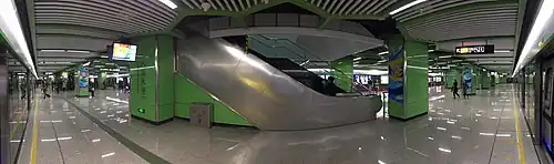 Hanxi Changlong Station (Chinese: 汉溪长隆站) is an interchange station on Line 3 and Line 7 of Guangzhou Metro that started operation on 28 December 2006. It is located under the east side of Hanxi Avenue (汉溪大道), Xinguang Expressway (新光快速公路), and the south of Chime-Long Paradise Amusement Park in Dashi Subdistrict (zh) of Panyu District of Guangzhou. There is a free shuttle bus connecting the station with the amusement park.[1][2][3]