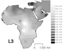L3 is common in Northeast Africa and some other parts of East Africa,[14] in contrast to others parts of Africa where the haplogroups L1 and L2 represent around two thirds of mtDNA lineages.[15] L3 sublineages are also frequent in the Arabian peninsula.