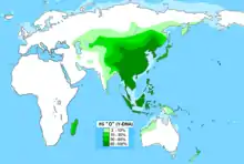 This haplogroup appears in 80-90% of most populations in East Asia and Southeast Asia, and it is almost exclusive to that region: M175 is almost nonexistent in Western Siberia, Western Asia, Europe, most of Africa, and the Americas, where its presence may be the result of recent migrations. However, certain subclades of Haplogroup O-M175 do achieve significant frequencies among some populations of Central Asia, South Asia, and Oceania. For example, one study found it at a rate of 65.81% among the Naimans, a tribe in Kazakhstan,[4] even though the rate among Kazakhs in general is believed to be only about 9% (Wells et al. 2001). It has been estimated that 25% of the entire male population of the world carries O-M175.[8][9] Karafet et al. (2015) have assigned the Y-DNA of 46.2% (12/26) of a sample of Papuan from Pantar Island to haplogroup NO-M214;[10] considering their location in the Malay Archipelago, all or most of these individuals should belong to haplogroup O-M175.