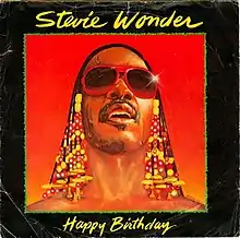 "Happy Birthday" is a song written, produced and performed by Stevie Wonder for the Motown label. Wonder, a social activist, was one of the main figures in the campaign to have the birthday of Martin Luther King Jr. become a national holiday, and created this single to promulgate the cause.[2] The song has since become a standard for use during birthdays in general, particularly among African-Americans.