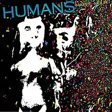 Happy Hour is the debut full-length by new wave band Humans' and was released in 1981 on I.R.S. Records,[1] and recorded at the famed Automatt studio in San Francisco under the direction of producer David Kahne. The songs "Don't Be Afraid of the Dark"/"Get You Tonight" and "Lightning" were released as a radio station promo single.[2] Lead singer Sterling Storm directed a longform music video based on this album. The videotape, entitled Happy Hour with the Humans, was distributed by Mike Nesmith's pioneering company, Pacific Arts Video.[3]