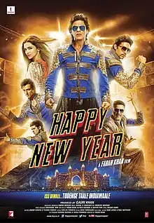 Happy New Year (sometimes abbreviated as HNY) is a 2014 Indian action comedy film[5] directed by Farah Khan and produced by Gauri Khan under the banner of Red Chillies Entertainment. The film features an ensemble cast of Shah Rukh Khan, Deepika Padukone, Abhishek Bachchan, Sonu Sood, Boman Irani, Vivaan Shah and Jackie Shroff. It was distributed worldwide by Yash Raj Films.[6] In the film, a bunch of losers transform themselves into a team that wins over the hearts of the people in the city and across the world, all as part of their quest to pull off the biggest diamond heist ever seen.