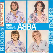 The Spanish-language version of the song, "Felicidad",[3] was released in 1980 in Spanish-speaking territories.[4] The single reportedly charted in the top 5 in Argentina and was included on the South American versions of the Super Trouper album.[5] It was first released on CD as part of the 1994 Polydor US compilation Más ABBA Oro, and in 1999 on the expanded re-release of ABBA Oro: Grandes Éxitos.