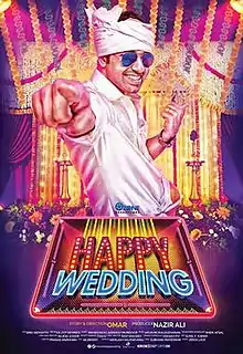 Happy Wedding is 2016 Indian Malayalam-language romantic comedy film directed by debutante Omar Lulu and distributed by Eros International, starring Siju Wilson, Sharaf U Dheen, Soubin Shahir, and Justin John. It was produced by Ozone Productions. The film narrates the story of an engineering graduate (Harikrishnan) as he decides to marry on his mother's insistence.[2] The music was composed by Arun Muraleedharan, and the lyrics were written by Rajeev Alunkal and Harinarayanan.