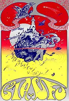The posters they designed for the UFO Club and Oz magazine drew on elements of Mucha, Ernst, Magritte, Bosch, Blake, and Dulac, pulling them together in a style that art critic George Melly called "Nouveau Art Nouveau" and Time was beginning to call "Nouveau Frisco".[22][23] They also designed posters for the Middle Earth club, Pink Floyd (who were the resident band at the UFO), The 5th Dimension, The Move, The Crazy World of Arthur Brown, Soft Machine, and the Incredible String Band.
