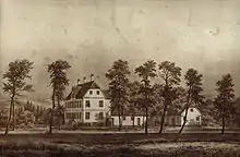 Danish author Steen Steensen Blicher, an amateur archaeologist and one of the first to visit the site, made the first literary reference to the Haraldskær Woman.[24] In 1836, he published his novella Gravhøjen which was a parody about a mistaken archaeological find. However, by 1841 Blicher seemed to have changed his mind about the Haraldskær Woman's identity when he wrote the poem Dronning Gunhild, a lament for the dead queen in the bog.[25] In 1846, the Danish playwright Jens Christian Hostrup wrote his comedy, A Sparrow Doing a Crane Dance, (En Spurv i Tranedans), in which the ghost of Queen Gunnhild gives a magical ring to a scheming tailor and makes everyone blind to his actions.[26] Hostrup's play indirectly satirized the theory that the Haraldskær Woman was Queen Gunnhild, and became the first major public endorsement of Worsaae’s hypothesis.
