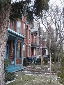 Lippincott Street runs north-south through Harbord Village, and is an example of the architectural style which used to typify the area. It was originally part of lot 17 purchased in 1815 by George Taylor Denison for the building of his new home "Belle Vue."[4] The street is likely named for Richard Lippincott (Loyalist) who settled in then York. The residential street runs through present day Kensington Market, College Street and Bloor Street. It includes a selection of Toronto architecture, including Victorian worker's cottages, Toronto bay-and-gable and more modern bungalows.