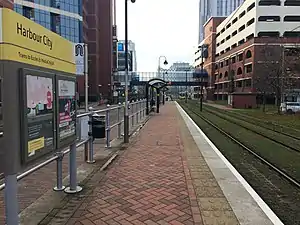 Harbour City is a tram stop on the Eccles Line of Greater Manchester's light rail Metrolink system. It is located in the Salford Quays area, in North West England, and opened on 12 June 1999 as part of Phase 2 of the system's expansion.