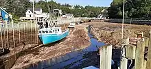 The area of Harbourville was originally granted to the Best family of New England Planters. They did not settle at Harbourville but logged the land which gained the location the name of Shingle Log Brook. The land around the brook was purchased by John Given and James Owens in 1824. They settled at the brook a few years later, built a pier and carried out logging as the area became known as Givens Wharf. The Hamilton family joined the settlement in 1829. The community became first a logging, then shipbuilding and trading centre exporting lumber and agricultural products from farms in the Berwick area of Annapolis Valley in the 1840s and 50s. On March 13, 1860 residents voted to choose the name Harbourville, reflection the sheltered harbour created by the book and piers. A Methodist church, which still stands as a United Church was built in 1860 and a school house was built in the next year. The community declined in the late 19th century as timber resources were depleted and the Windsor and Annapolis Railway, later the Dominion Atlantic Railway took over agricultural exports from the Annapolis Valley. The harbour continued to be used by inshore fishermen. Tourism became an industry in the early 20th century as a number of summer hotels operated, later replaced by summer cottages along the bay. Famous Hollywood actress Theda Bara owned a cottage in the area called "Baranook".[1] Fishing and tourism remain the principle industry. Harbourville's wharves were always managed locally and never became part of the Small Craft Harbour program of the federal government. Maintenance and operation of the wharves were taken over by the Harbourville Restoration Society in 1999. The east wharf was restored by the society in 2003 and the west wharf was restored in 2009.[2]