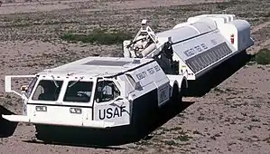 A second team consisting of Boeing Aerospace and Electronics' Loral Defense Systems Division (Goodyear Aerospace) built an eight wheel drive vehicle and trailer.