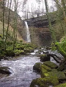 Hardraw Force (OS grid ref: SD869917) is a waterfall on Hardraw Beck in Hardraw Scar, a wooded ravine just outside the hamlet of Hardraw, 0.9 miles (1.5 km) north of the town of Hawes, Wensleydale, in the Yorkshire Dales.[1] The Pennine Way long distance footpath passes close by.