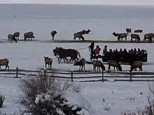 The state of Utah purchased the ranch in 1946 from the Ernst Lorentz Petersen family estate, who immigrated from Denmark in the 1860s Box Elder Hardware Company,[1] using money from the Wildlife Restoration Act.[2] The original size of the ranch was 7,560 acres (30.6 km2; 11.81 sq mi),[2] but acquisitions by the state enlarged it to about 19,000 acres (77 km2; 30 sq mi).[3] During the first year only 120 Rocky Mountain Elk were fed over the winter,[1] but in 2008 that number is between 500 and 600.[4]