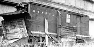 When the H&W stopped operating it owed the St.J.&L.C. a substantial debt.[3]: 54 The St.J.&L.C. resumed control of the spur that had been leased to the H&W, which remained in service as long as there was a need to ship granite by rail.[7]: 26 The rails south of Buffalo Crossing were removed in August 1940[7]: 25 No buyers could be found for the remaining locomotives, so they were scrapped, along with some 40 flat cars, the rails, and some other equipment.[7]: 27 [20]: 31 Just one flat car was taken by the St.J.&L.C.[3]: 56 The proceeds from the scrapping were used to repay the St.J.&L.C.[7]: 27 Company records were mostly discarded.[20]: 31