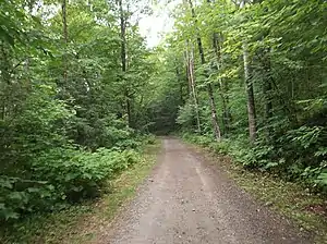 The abandonment and removal of the railroad's track left a trail through the hillside pastures, which have reverted to woods. A portion of the roadbed leading to the quarries is now Fletcher Quarry Road and Quarry Road in Woodbury, serving the one Robeson Mountain quarry still in operation. Decades after the abandonment, some of the right-of-way, from near Buffalo Crossing to the Woodbury Town Forest, found a new use as the Hardwick-Woodbury Rail Trail (also known as the Hardwick-Woodbury Recreation Trail).[36][37][20]: 32 [38]