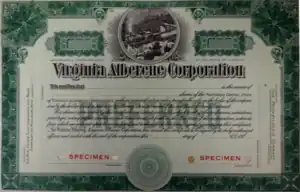 The postcard photograph of Locomotive No. 3 pulling a trainload of granite blocks saw continued life in other forms. The picture became something of a "stock photo" in the 1920s and was reproduced—typically without attribution—far from Vermont. This included such circumstances as stock certificates of, for example, the Virginia Alberene Corporation (see photo), which used a short-line industrial railroad to move blocks of soapstone.[17]