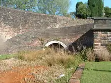 ![]() Northern end of Telford's Harecastle Tunnel (left) next to the disused Brindley tunnel (right). | |