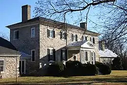 The house was designed by John Ariss for Samuel Washington in 1770, using a center-hall, single-pile plan. The two-story limestone house has a raised basement and flanking stone wings. Exterior details are simple, with only a modillioned cornice at the eaves of the shallow hipped roof. The interior is detailed in the manner of the Tidewater-region houses that Washington and Arris were familiar with. Interior detailing is extensive with Doric pilasters in the main downstairs rooms.[2]