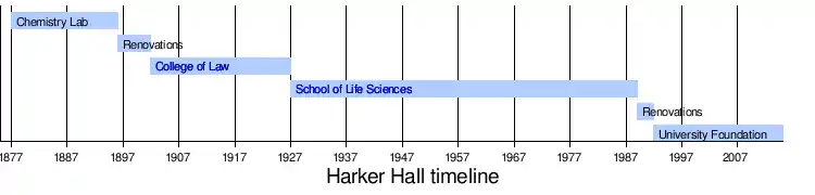 Harker Hall, also known as the Chemical Laboratory, is a historic building on the campus of the University of Illinois at Urbana–Champaign in Urbana, Illinois. Built in 1877, the building originally served as the university's chemical laboratory. Architect Nathan Clifford Ricker designed the Second Empire building, which originally featured a mansard roof. In 1896, a lightning strike set the roof on fire, and architect James White replaced it with a hip roof.[2] The building was named Harker Hall in honor of Oliver A. Harker, who served as dean of the university's law school from 1903 to 1916. Until it stopped hosting classes, the hall was the oldest classroom building at the university.[3]