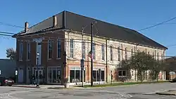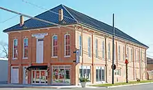 Harlan Hall is a historic opera house located at 603 Locust St. in Marshall, Illinois. The opera house opened in 1872 to provide a venue for theatrical performances in Marshall. The building has an Italianate design with tall, narrow windows, wide bracketed eaves, and a steeply sloping roof. Both local and traveling theatrical acts performed in the theater, which also hosted concerts, public meetings, and other events. The opera house had a livery stable on its first floor for its patrons' horses, an unusual feature for contemporary theaters. In 1904, B. F. Johnson purchased the building and converted it to a movie theater; while it still served as a civic auditorium, the building no longer showed theatrical performances after this point. The building has since held a Moose Lodge, and its first floor has been converted to a commercial space.[2]