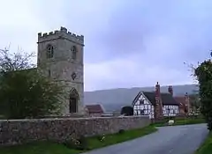 The village lies at the foot of Wenlock Edge about 9.5 miles to the south-east of Shrewsbury. The A458 road Shrewsbury to Bridgnorth road goes around the village on a bypass. The village is about 105 metres (344 ft) above sea level on the southern slope of an extensive bed of sand and gravel, which creates an undulating landscape to the north-east of the parish. Harley Brook runs north-east across the centre of the village.