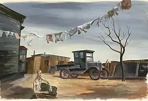 Harold Black (1913โ1993) was an American artist known for his work with the Works Progress Administration (WPA).[1] Born on December 13, 1913, in New York City he attended National Academy of Design.[2] He was married to fellow artist Isabel Bate (1909โ1995). The couple lived in New York City. They were commissioned by the WPA to complete eight murals for the U.S. Post Office in Salina, Kansas. The couple completed the murals and sent them to Salina, but they were never installed.[3] The couple also illustrated the 1941 book The Kaw: The Heart of a Nation by Floyd Benjamin Streeter.[4] Black's work was included in the 1940 Museum of Modern Art exhibition and competition The Artist as Reporter.[5]